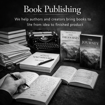 product, including: Manuscript development, Editing and proofreading, Cover design, Interior layout and formatting, Print production and Publishing support.